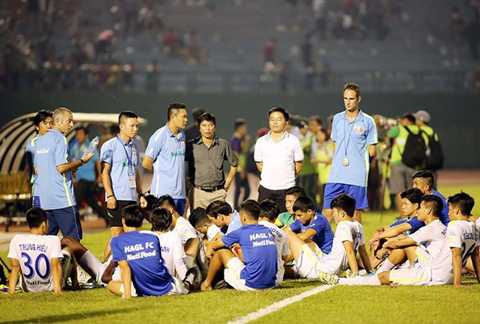 Trưa 30/6, ngay khi các cầu thủ vừa rời phòng họp báo, toàn đội HAGL đã phải họp khẩn với bầu Đức xoay quanh chuyện đội bóng phố núi thi đấu không thành công tại V-League.