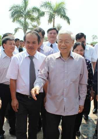 | Tổng Bí thư Nguyễn Phú Trọng thăm và làm việc với các doanh nghiệp Việt Nam đầu tư vào các dự án ở Nam Lào tại trụ sở Trung tâm điều hành của Tập đoàn Hoàng Anh Gia Lai tại tỉnh Attapeu (Lào). |