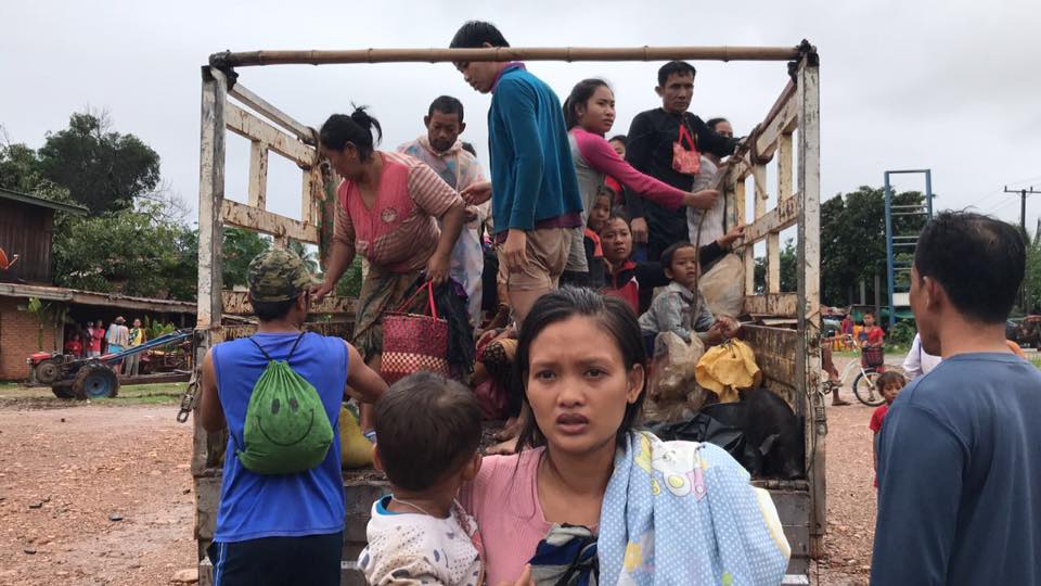 Nhiều người dân di chuyển đến nơi an toàn do vỡ đập thủy điện. (Ảnh: Xai Kommasith)