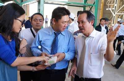 | Bầu Đức giới thiệu mẻ đường mới xuất xưởng tại Attateu, Lào. |