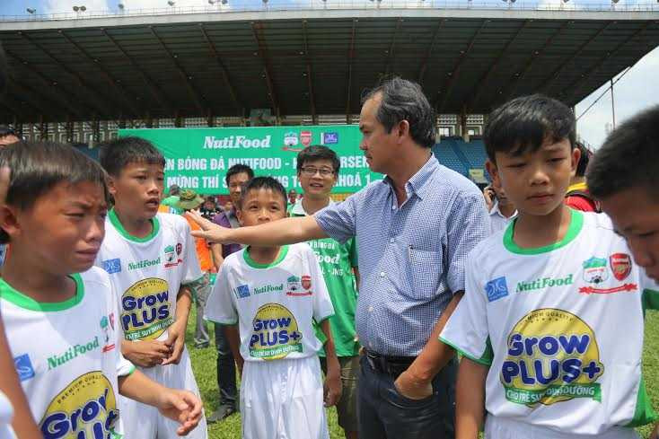 | Bầu Đức có sự hợp tác mật thiết với Nutifood HAGL Arsenal JMG |