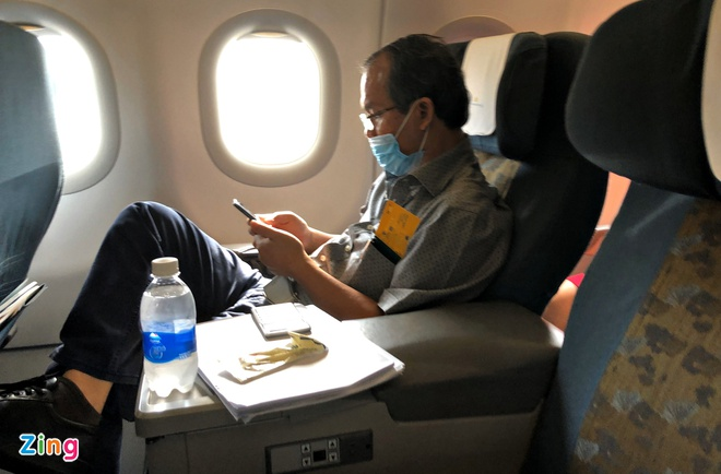 Bầu Đức trên chuyến bay về Pleiku chiều 29/9. Ảnh: Mai Anh.