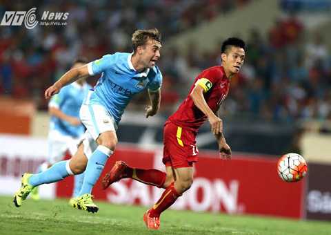 | Văn Quyết vượt hậu vệ Man City, ghi bàn cho tuyển Việt Nam (Ảnh: Quang Minh) |