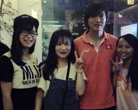 | Fan hâm mộ tới khách sạn chúc mừng sinh nhật Tuấn Anh (Ảnh: Nguyễn Thắm) |
