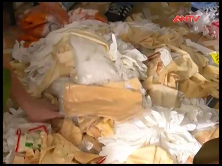 (VTC News) - Ngày 26/9, tổ công tác Phòng cảnh sát môi trường công an thànhphố Hà Nội đã phối hợp đội Quản lý thị trường số 2 chi cục QLTT Hà Nội tiếnhành kiểm tra các cơ sở kinh doanh trên tuyến phố Hàng Khoai, Nguyễn Thiệp,Hà Nội, phát hiện nhiều găng tay y tế đã qua sử dụng đang được bày bán.