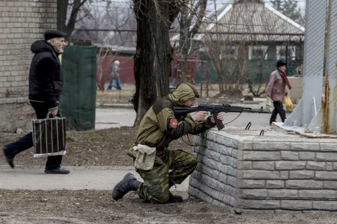 | Lính ly khai thân Nga bảo vệ an ninh tại Donetsk - Ảnh: Reuters |