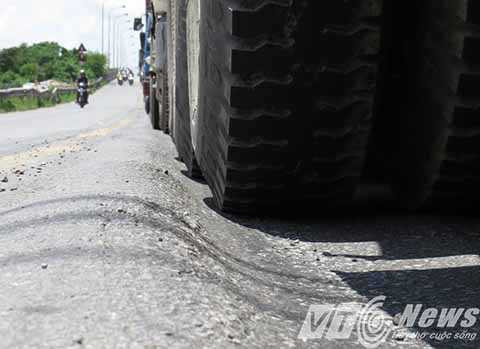 Những vết lún có độ cao từ 4-12cm, chủ yếu nằm ở 2 làn dành cho xe ô tô và phần giáp ranh với làn đường dành cho xe mô tô.
