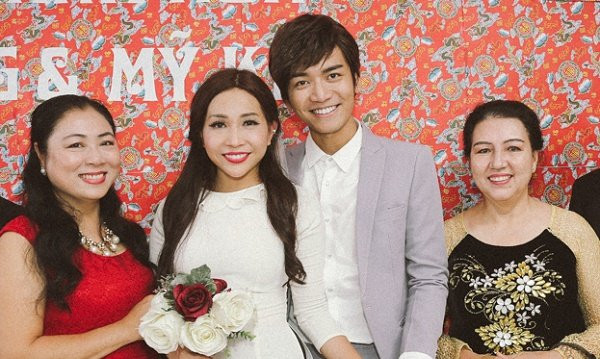 Khả Như và BB Trần trong trang phục cô dâu - chú rể.