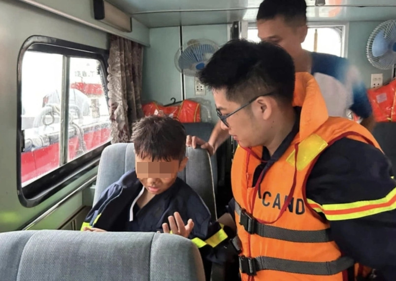 Cháu bé 10 tuổi sống sót sau vụ lật tàu. (Ảnh: Công an tỉnh Quảng Ninh)