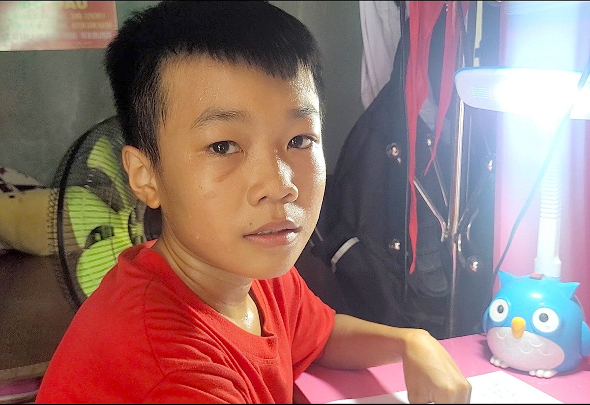 Phúc thường cúi gằm mặt xuống, nước mắt em chực trào khi ai đó hỏi về bố mẹ. "Em muốn có bố mẹ và cuộc sống bình thường như bạn bè”, cậu bé 12 tuổi - Nguyễn Đình Hữu Phúc nói.