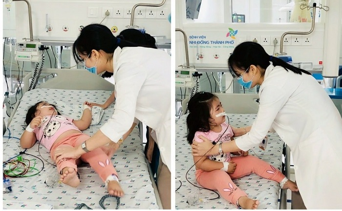 Được sự dỗ dành của các điều dưỡng, bé đã được trấn an tâm lý, sức khỏe ổn định.