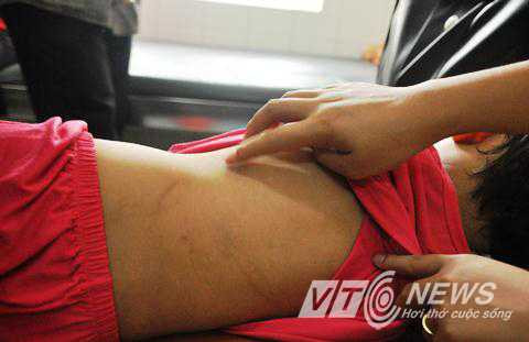 | Những vết đánh trên cơ thể bé Ngân còn in hằn. |