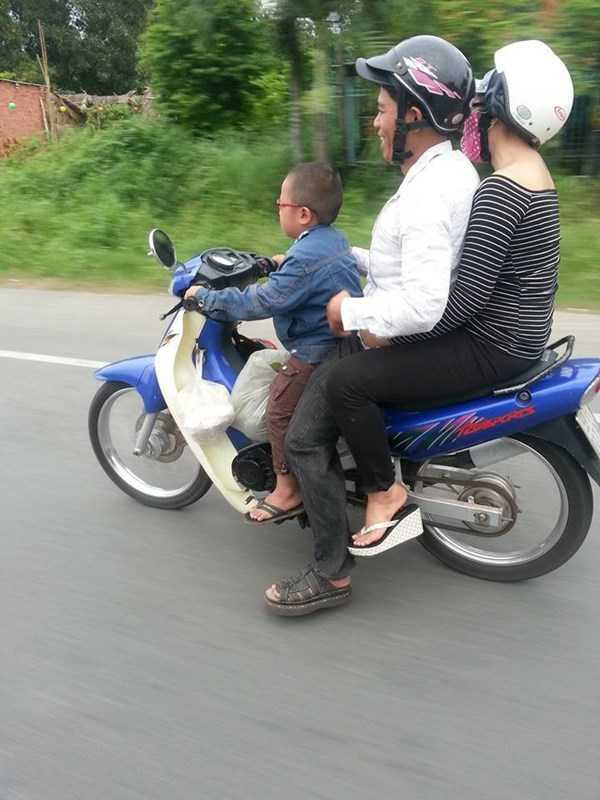 Cùng xem bình luận chỉ trích hai người lớn ngồi sau xe máy cậu nhóc này của dân mạng: “Thật là ngu ngốc”; “Không hiểu cha mẹ bé nghĩ gì? Đúng là hết thuốc chữa”; “2 người lớn chẳng hiểu nghĩ gì mà để đứa trẻ con lái xe, đi với vận tốc tương đối đấy vì chụp ảnh thấy hậu cảnh nhòe nhoẹt thế kia cơ mà”; “Tội nghiệp thay cho những đứa bé có những người sanh ra chúng vô ý thức và ngu xuẩn thế này”….