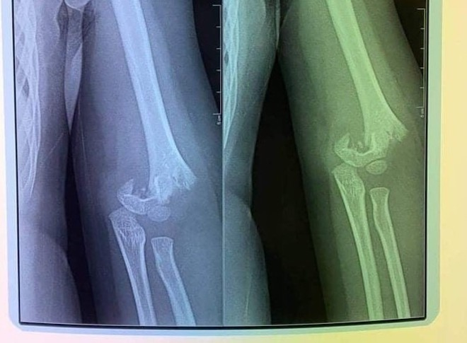 Hình ảnh chụp phim cho thấy trẻ bị gãy xương cánh tay. (Ảnh: Gia đình cung cấp)