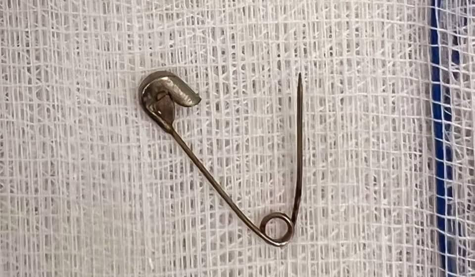 Các bác sĩ Bệnh viện Nhi Đồng Thành Phố (TP.HCM) vừa nội soi gắp kịp thời chiếc kim băng sắc bén trong dạ dày bệnh nhi N.H.K.A. 6 tháng, ngụ Bình Chánh, TP.HCM. Bé nhập viện trong tình trạng quấy khóc, bụng chướng nhẹ, hoảng loạn. Trước đó bé giật chiếc kim băng gài trên áo cho vào miệng.