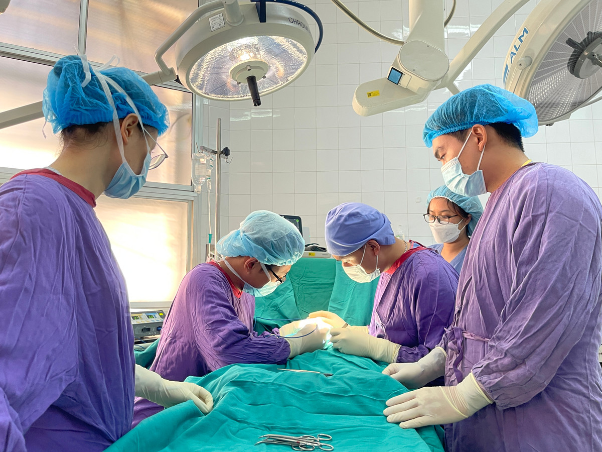 Các bác sĩ đang phẫu thuật cho bệnh nhi.