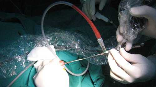 Các bác sĩ đã dùng những dụng cụ nội soi rất nhỏ cùng với kềm nghiền sỏi chỉ dùng ở trẻ em để phá sỏi và gắp sỏi ra ngoài cho bé. Ca mổ thuận lợi, chỉ mất khoảng 20 phút, thời gian gây mê rất ngắn. Hiện bé ổn định, hết đau, tiểu được và ra về trong ngày.