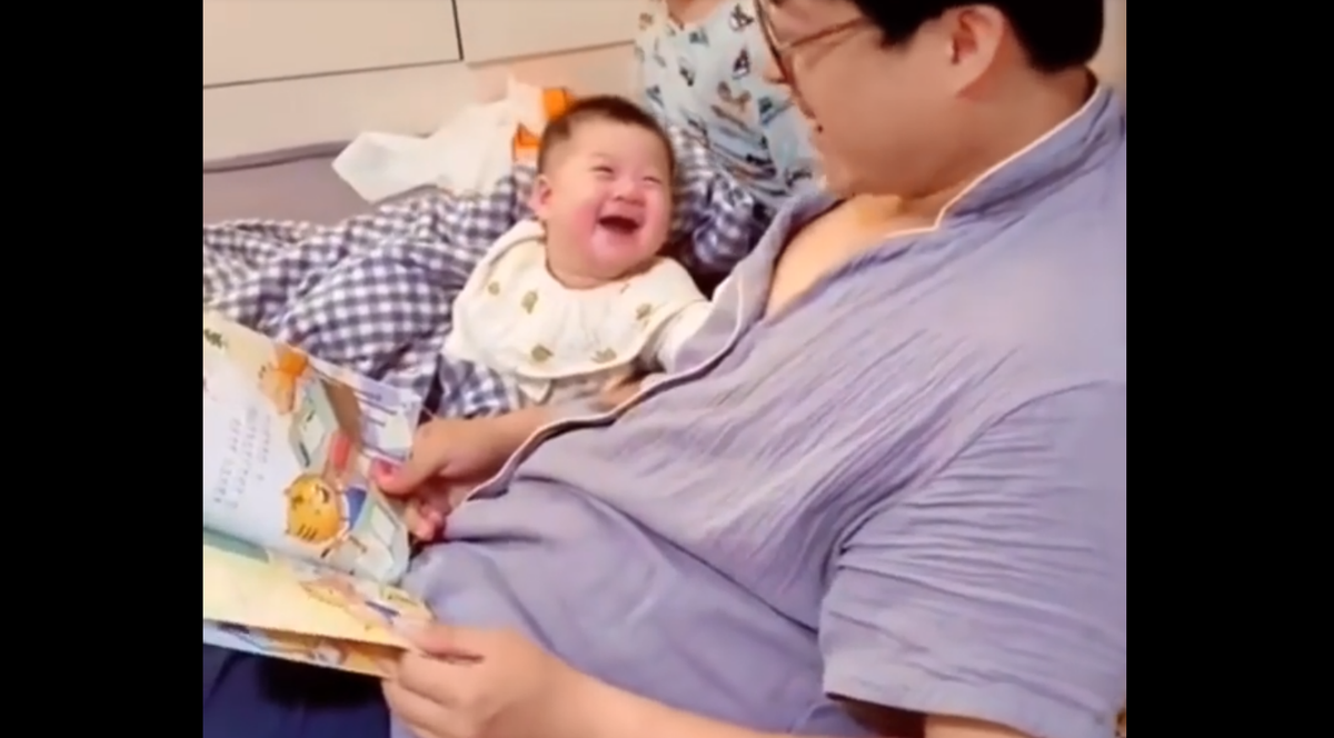 Bé con cười nắc nẻ khi nghe bố đọc truyện