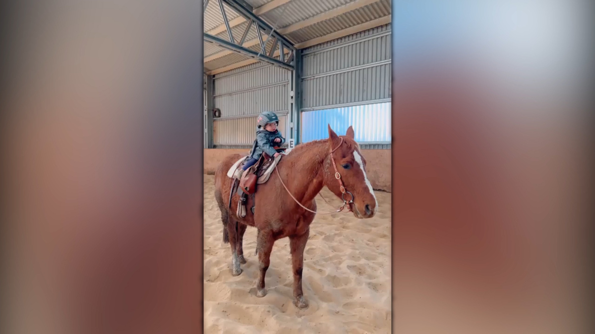 Bé gái 1 tuổi cưỡi ngựa như người lớn