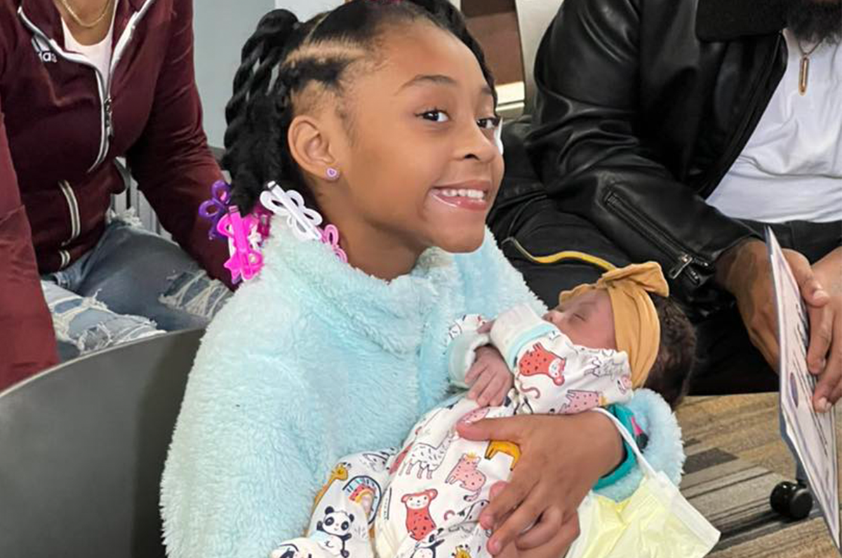 Đứa bé sơ sinh đã chào đời an toàn dưới bàn tay của chị gái.