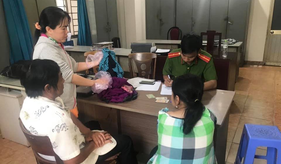 Bé H. cùng gia đình đến cơ quan công an trình báo sự việc.