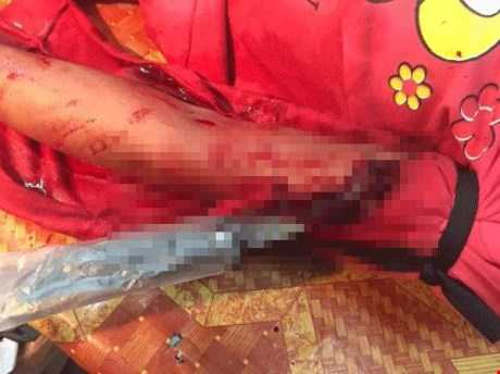 Hai đối tượng bịt kín mặt, chặn xe hai chị em bé Hoàng Thị Duyên rồi hung bạo dùng dao nhọn đâm thẳng vào cánh tay Duyên.