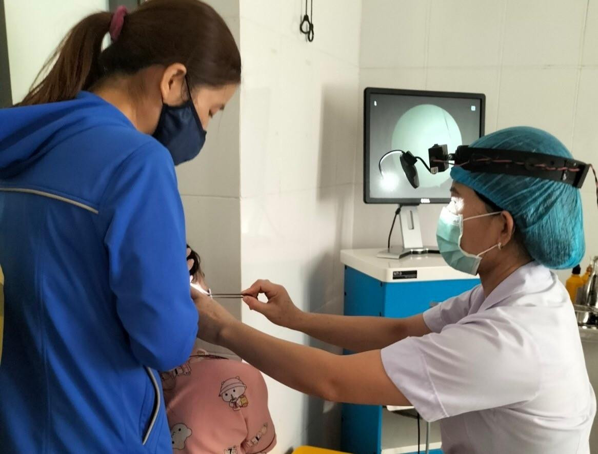 Theo lời kể của bệnh nhi N.T.T. (12 tuổi, trú xã Lâm Trung Thủy, huyện Đức Thọ), trong lúc ngủ đột nhiên thấy đau tai dữ dội, ù tai kèm theo đó là nhức đầu. Sau đó gia đình đã đưa cháu tới bệnh viện và được các bác sĩ nội soi kiểm tra tai.