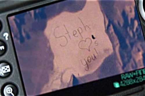 Sau đó một phi hành gia đã gửi về Trái Đất hình ảnh anh ghi được bằng camera dòng chữ ‘Steph loves you’ mà đội xe 'viết' trên nền cát.