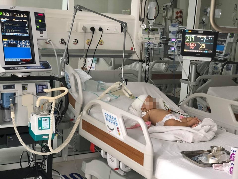 Ngay sau đó, nạn nhân được chuyển đến bệnh viện cấp cứu. Kết quả kiểm tra hình ảnh. Bác sĩ chẩn đoán bé bị chấn thương sọ não do lún xương sọ vùng đỉnh, chẩm phải nên đã thực hiện phẫu thuật.