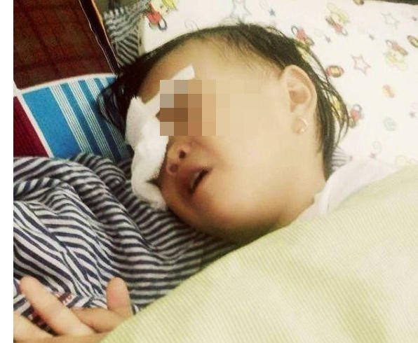 Nghe tiếng khóc thất thanh của cháu, mọi người hoảng hốt chạy đến thì thấy mắt phải máu chảy ra nhiều. Ngay sau đó gia đình đã đưa bé ra thẳng Bệnh viện mắt Trung ương (Hà Nội) để cứu chữa. Tại đây các bác sỹ cho biết, do vết thương quá nặng nên mắt phải của bé bị hỏng hoàn toàn.