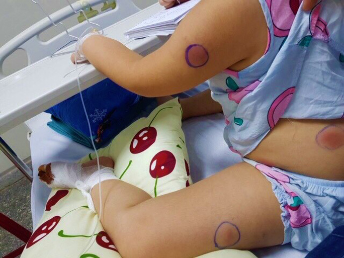 Bác sĩ Phạm Thị Ngọc Hân - Trưởng khoa Nhi của bệnh viện cho hay, chỉ 1 ngày nhập viện, tình trạng viêm tấy lan ra rất nhiều nơi trong cơ thể bệnh nhân, sau đó tạo thành các ổ áp xe. Xác định đây là một ca bệnh nặng, phức tạp có thể nguy hiểm đến tính mạng nên các bác sĩ dùng kháng sinh, lên phác đồ điều trị và tích cực xét nghiệm để tìm nguyên nhân.