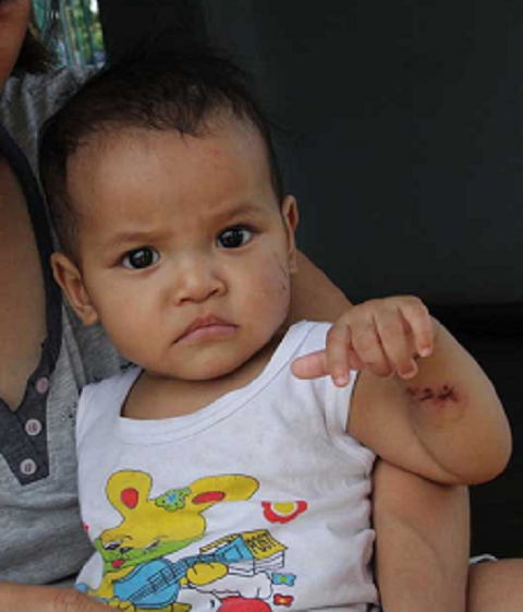 | Cháu Hà bị nhiều vết bầm tím trên người Ảnh :TD |