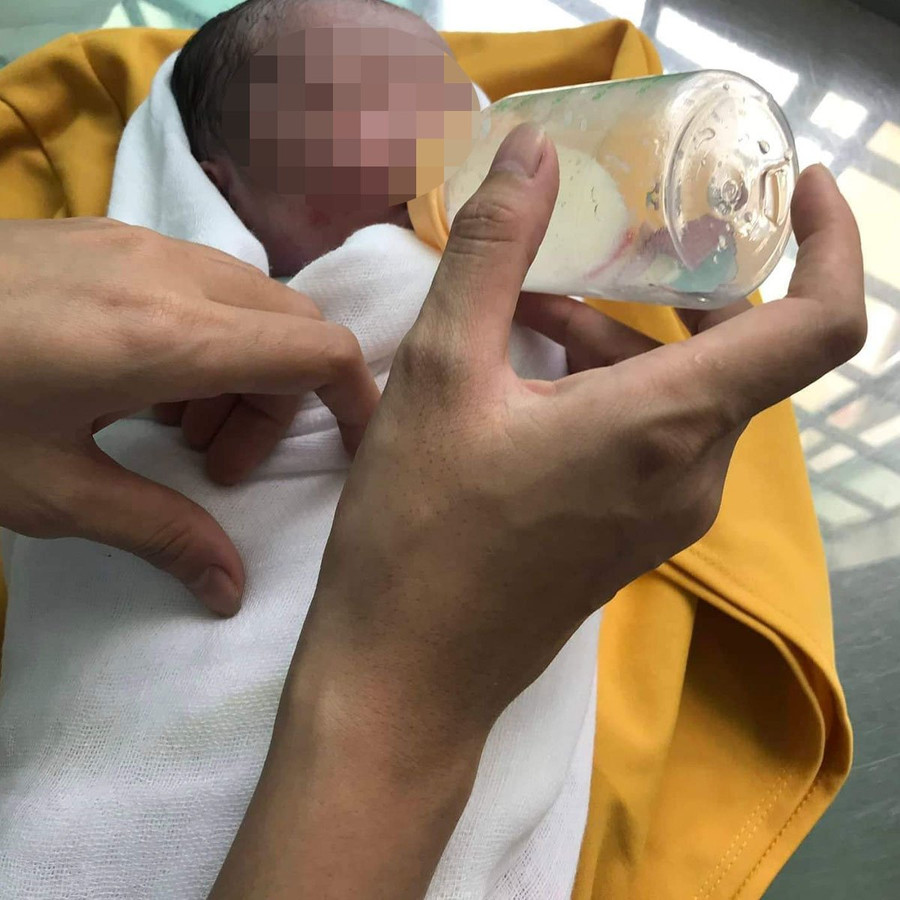 Thời điểm đưa lên bệnh viện, bé nặng 2,7kg, sức khỏe khá yếu, phải điều trị. Đến hôm nay, sau khi xét nghiệm lại sức khỏe bé đã ổn định, đã bú sữa ngoài.