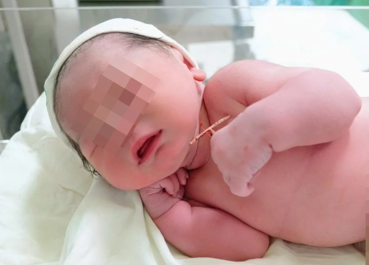 Các bác sĩ ghi lại khoảnh khắc bé gái chào đời cùng với chiếc vòng tránh thai của người mẹ. (Ảnh: BVCC)
