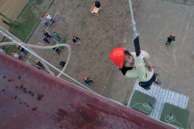 Một em nhỏ tỏ ra rất bạo dạn khi đu từ độ cao gần 30 mét.