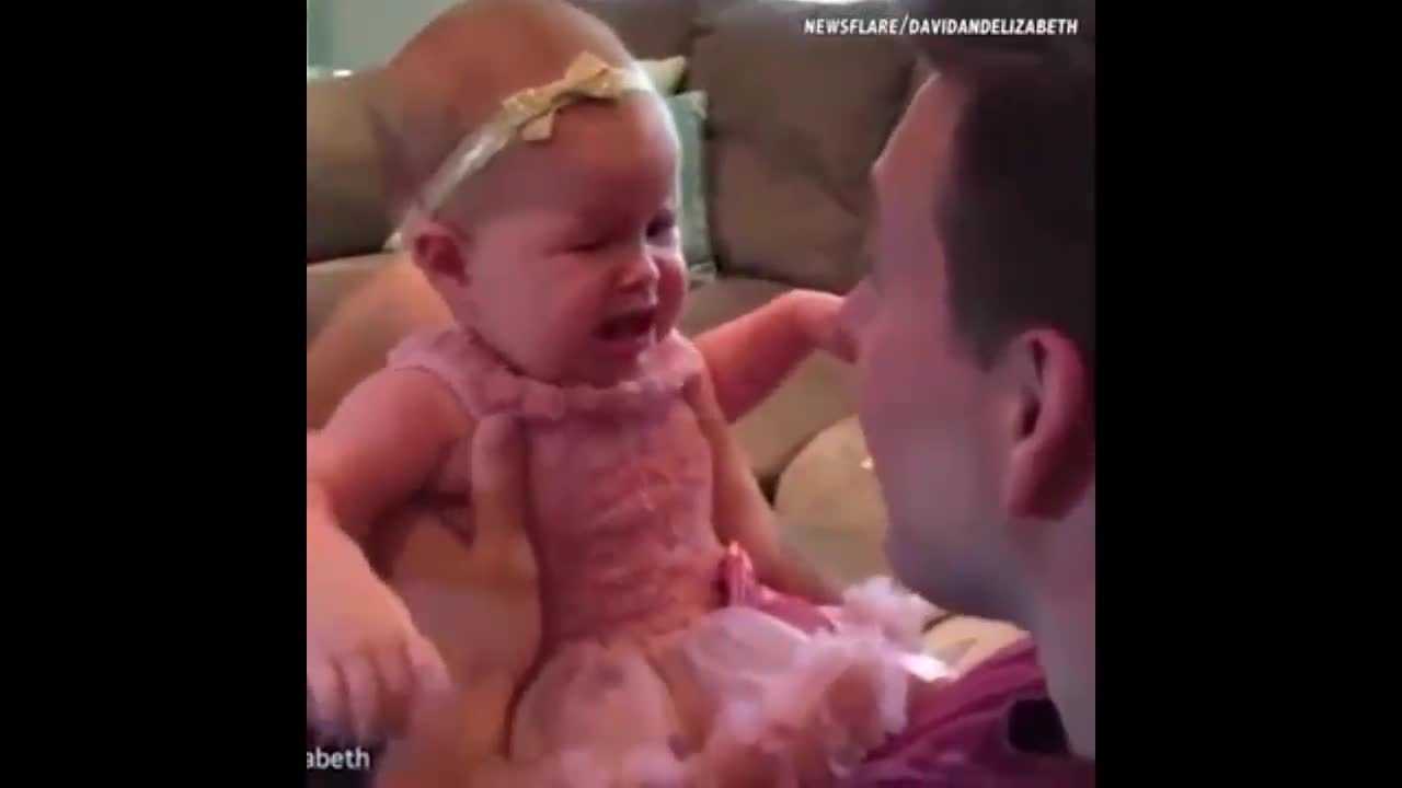 Ông bố định gây bất ngờ cho cô con gái bé nhỏ bằng cách cạo bộ râu quen thuộc, nhưng không ngờ lại khiến cô bé khóc nức nở, dỗ mãi không nín.