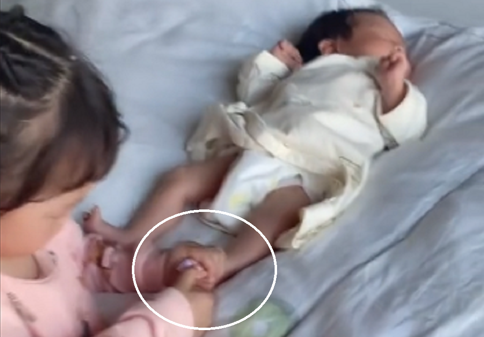 Mới lọt lòng mẹ đã được chị gái làm cho bộ móng sành điệu. (Ảnh: Babylovenoteeth/Titkok)