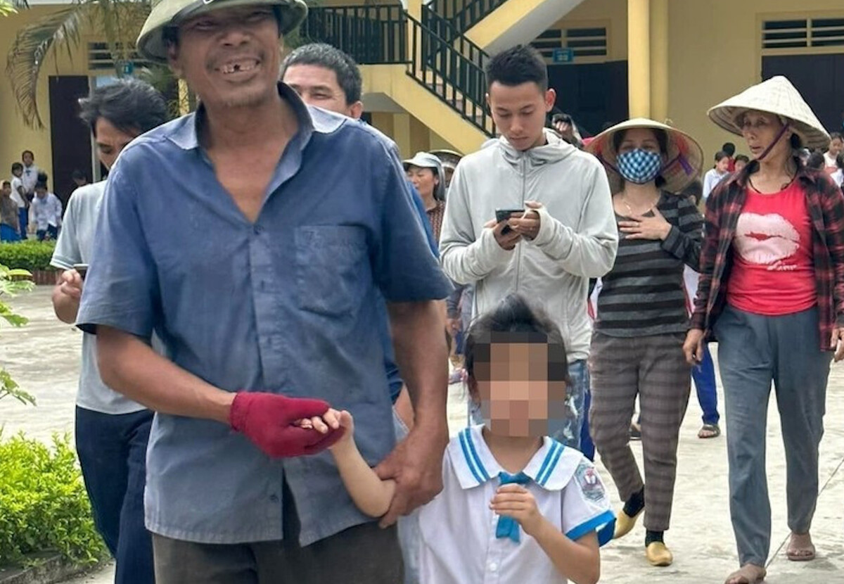 Bé gái được bố đón về sau khi ngủ dậy. (Ảnh: Báo Nghệ An)