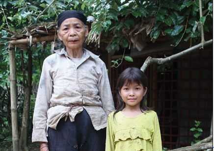 | Hai bà cháu cô bé Khánh. |