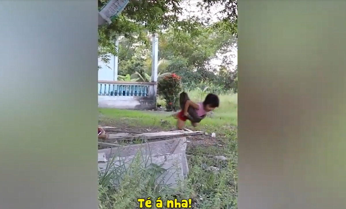 Bé gái ngã chỏng vó vì không nghe lời