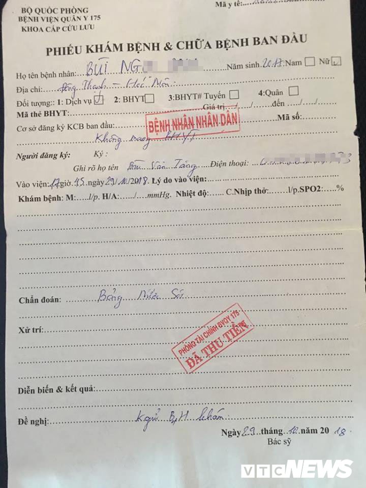 Anh Tăng cùng gia đình đưa bé Ngọc A. đến Bệnh viện Quân y 175 để điều trị.