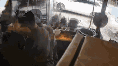 Bé gái 3 tuổi ở Thái Lan với lấy vô lăng và bẻ lái đột ngột, người mẹ hoảng hốt đã nhấn ga tông vào chiếc ô tô khác, lực tông mạnh khiến ô tô này lao vào quán mì.