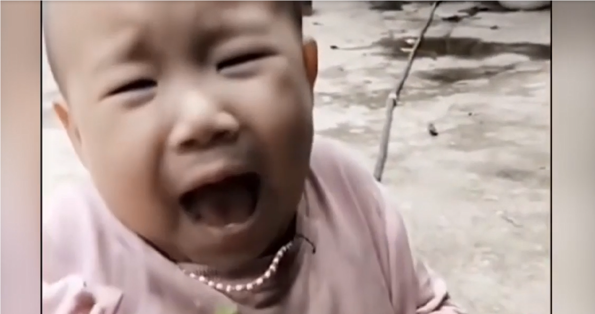 Háo hức ăn quả nho xanh mọng vào miệng, bé gái phải vội nhổ ra vì quá chua.