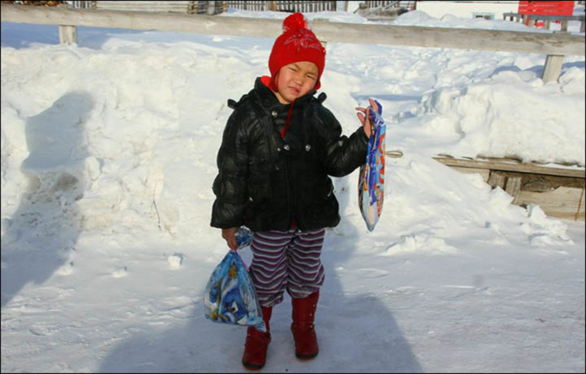 Cô bé Saglana lần đầu tiên kể về chuyến đi dài 6 tiếng buồn bã của mình qua những trận mưa tuyết đầy nguy hiểm với bầy sói xung quanh để đến nhà một người hàng xóm từ trang trại hẻo lánh của ông bà.