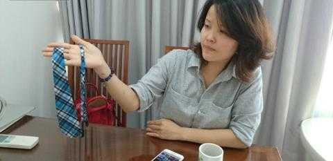 | Chị Hiếu - phụ huynh cháu Lê Quang Minh Hải bức xúc đồng phục học sinh là chiếc cà-vạt gây khó khi thắt cho con mỗi khi đi học |