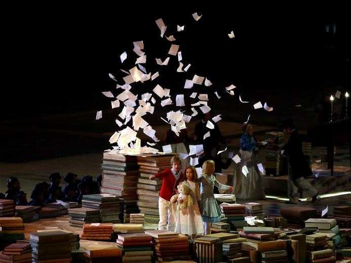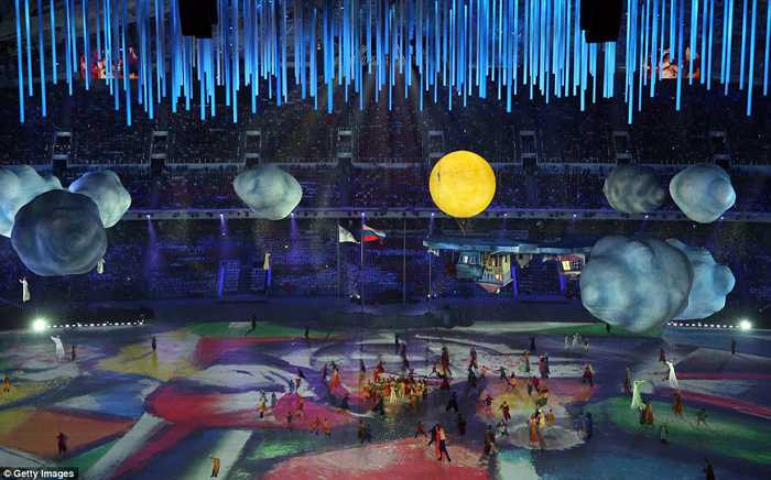 Lễ bế mạc bắt đầu bằng hình ảnh quốc kỳ và bản quốc ca Nga được hợp xướng bởi 4000 các em nhỏ.