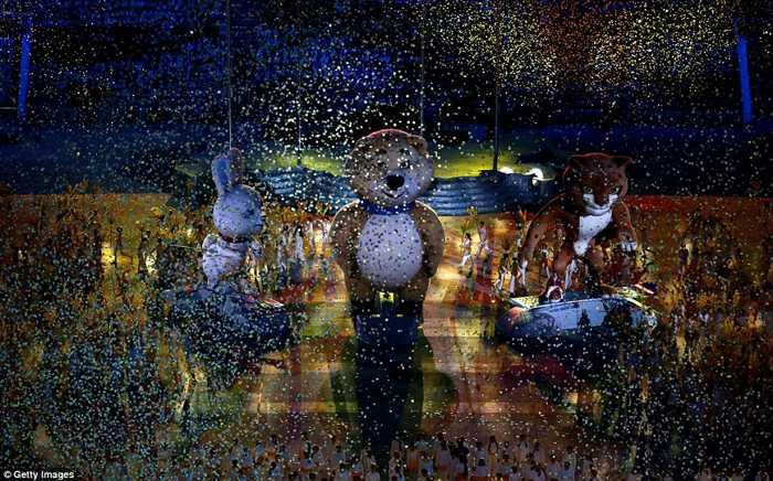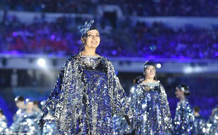 Những vận động viên nhận huy chương tại sân vận động Fisht, nơi diễn ra lễ bế mạc.