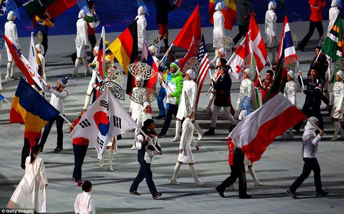 Nghi thức diễu hành của VĐV đại diện các đoàn thể thao dự Olympic mùa Đông Sochi 2014.