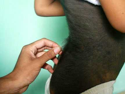 không chỉ ở lưng mà khắp người, chân tay, mặt, đầu và cả tóc, Phong cũng bị bớt và mọc đầy lông