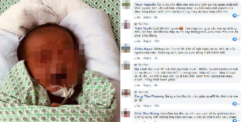 Thuong Nguyen bày tỏ: "Nếu đã không nuôi được thì đừng sinh con ra đời, nếu nhẫn tâm vứt bỏ sao không để trước cổng chùa, hay nơi nào đó để mọi ng nhìn thầy mà cứu con? Làm mẹ mà quá nhẫn tâm, rồi sẽ có ngày quả báo".